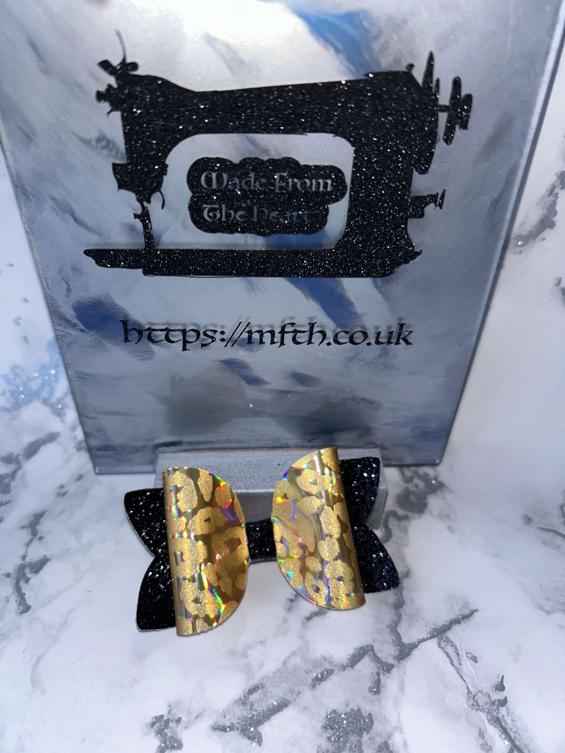 Be the first to review “Black and gold leopard print bow”