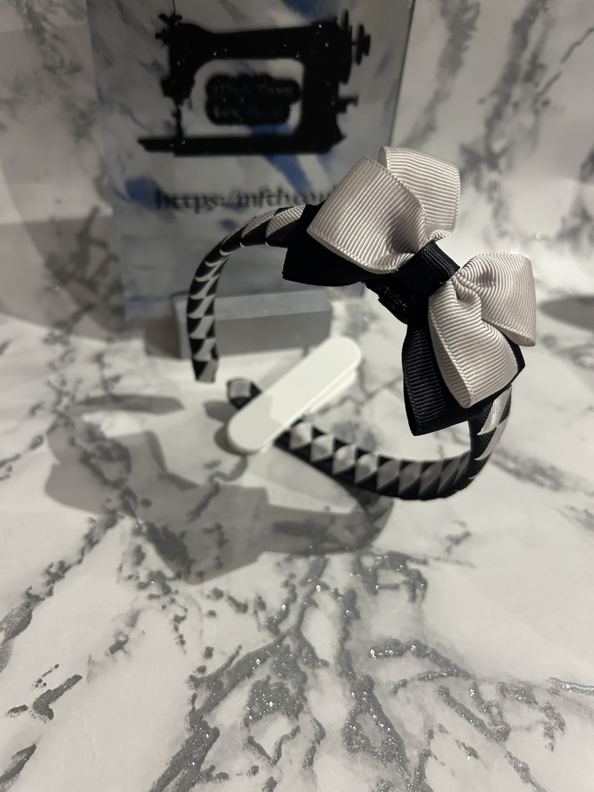 Diamond style Headband with matching bow made with grosgrain ribbon